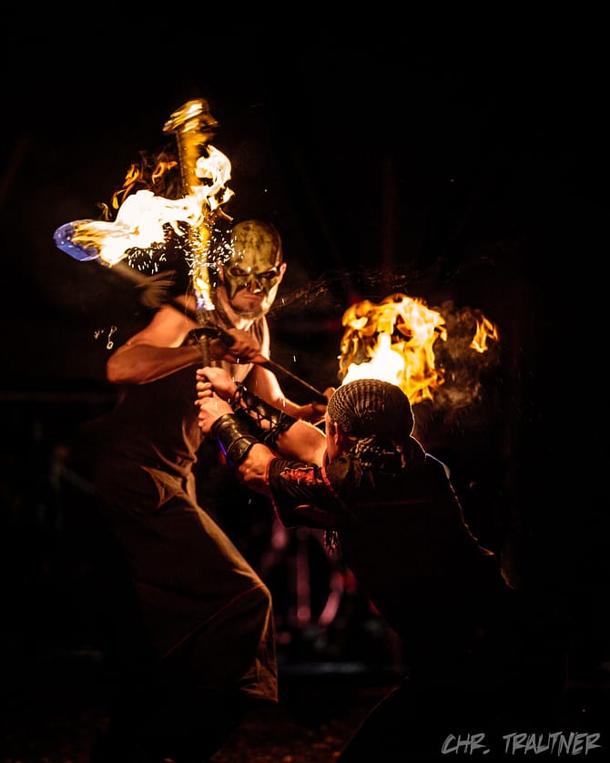 Feuershow, Pyroshow, Gaukler, Jonglage, Stuntshow, Unterhaltungskunst