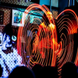 Sie können Sarah Louis-Jean bundesweit buchen für Feuershows (Feuer Poi Shows, Fächer Shows und Feuerspucker Animation), LED Shows, für anspruchsvolle Bühnen Feuer Einlagen, Gesang Shows oder einer Kombination aus verschiedenen Acts (Bombo Shows, Boleadoras Shows und mehr… für ein Gesamt Bühnen Programm!